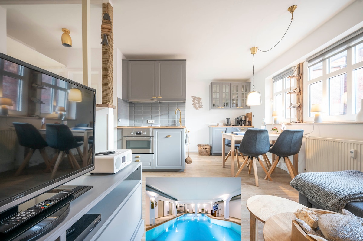 Apartment von Koje by Bheaven in der Stadtmitte mit moderner Einrichtung und eigenem, kostenlosen Parkplatz. Es erwartet dich eine zentral gelegene Unterkunft mit modernem Flair, die fußläufig zu allen Sehenswürdigkeiten gelegen ist. Genieße die gemütliche Ausstattung und kehre nach spannenden Seestadt-Ausflügen an diesen tollen Ort zurück. Bei Fragen oder auf der Suche nach Empfehlungen stehen wir dir gerne zur Verfügung!