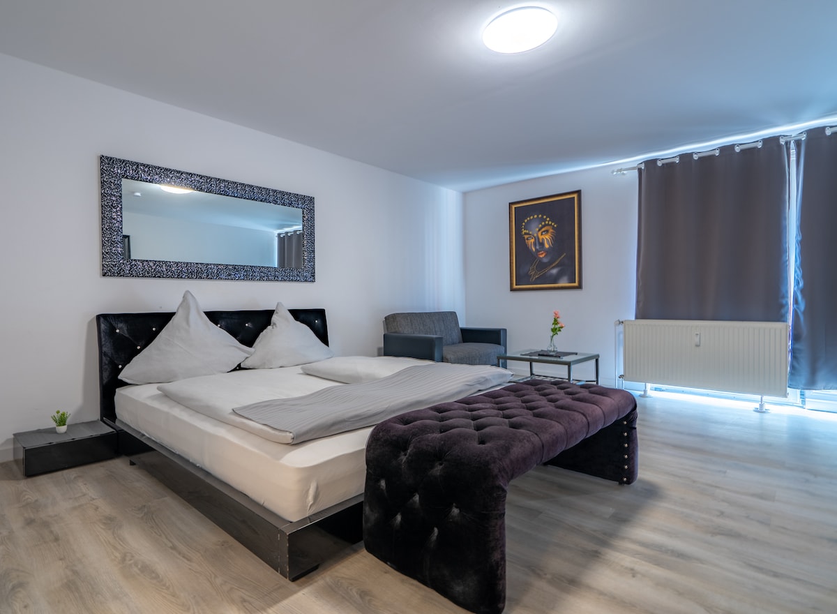 Sie suchen die ganz besondere Unterkunft? Sie lieben die Ruhe, möchten aber trotzdem schnell im Geschehen sein? Dann sind Sie bei uns genau richtig. Dieses modern eingerichtete Apartment verfügt über 2 Schlafzimmer für 3 Personen. Der Wohnraum Die Zimmer befinden sich im Hochparterre. Frische Bettwäsche und frische Handtücher sind im Preis enthalten. Die Küche ist ausgestattet mit Kühlschrank/Gefriereinheit, Backofen, 4er Ceranfeld, Geschirrspüller, Wasserkocher, Toaster und Nespresso Machine