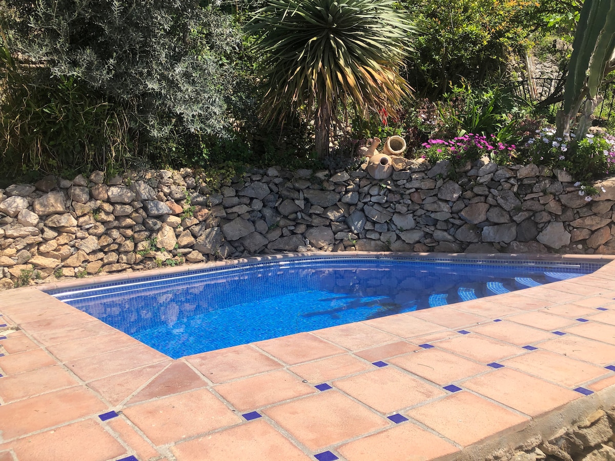 This is a beautiful little newly restored farm cottage in the foothills of the Almijara mountains of Andalucia designed, furnished & decorated by a sculptor & his wife. There is a 9m long 1.2m wide & 60cm deep plunge-pool to cool off in that is set in a sunken garden, the view is to the North & the white mountain village of Frigiliana & Nerja on the coast.