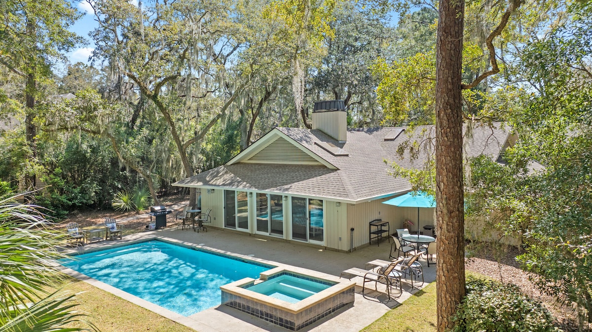 Lovely 3 BR home on #2 tee of the Fazio golf course in Palmetto Dunes Resort. Near tennis/pickleball center, general store, & restaurants. Newer pool and spa. Quartz countertops. Two King BRs, 3rd BR with 2 Queens. Flat screen TVs, cable, ROKU in all BRs. Doorbell cam at front door porch with recording capability for host/guest safety. Beach access @ Omni resort and the Dunes House a 5-10 min ride by bike or 15 min walk. Beach towels/umbrellas/chairs not provided. Pool/spa heat for extra fee.