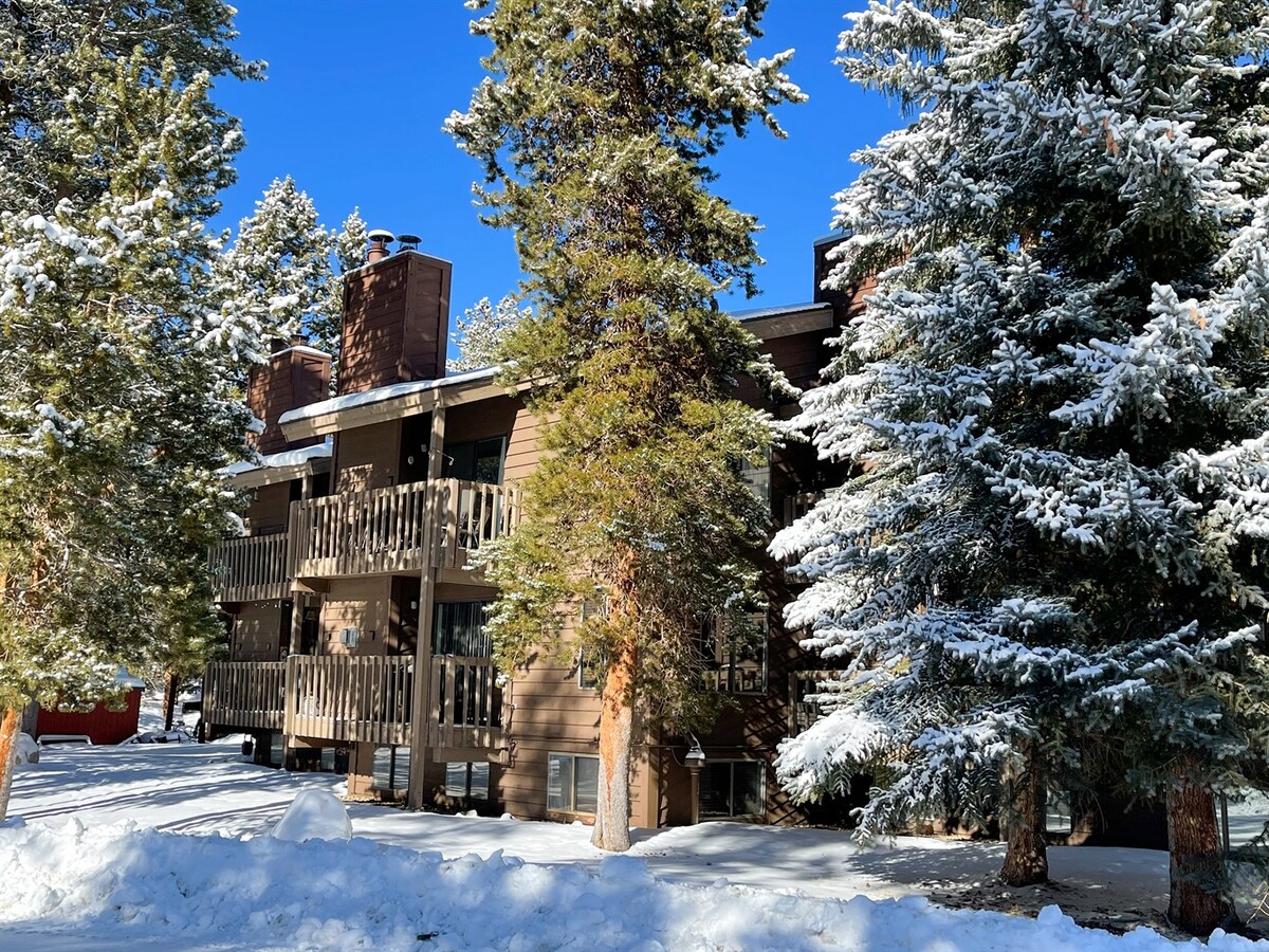 Free covered parking & high-speed internet. 890 sq ft condo w/private balcony overlooking Tenmile Creek & nestled into Mt. Royal. Enjoy a fully equipped kitchen, gas fireplace, balcony, Netflix/smart TV. Bus stops directly out front & drops you at Copper Mnt in 7 min! Centrally located near multiple world-class ski resorts (Vail, Breck, Keystone etc) Tenmile Creek & bike/rec path steps away. Walk to Main St. for shopping & dining. Rent a boat, paddle board at Lake Dillon (.7miles).