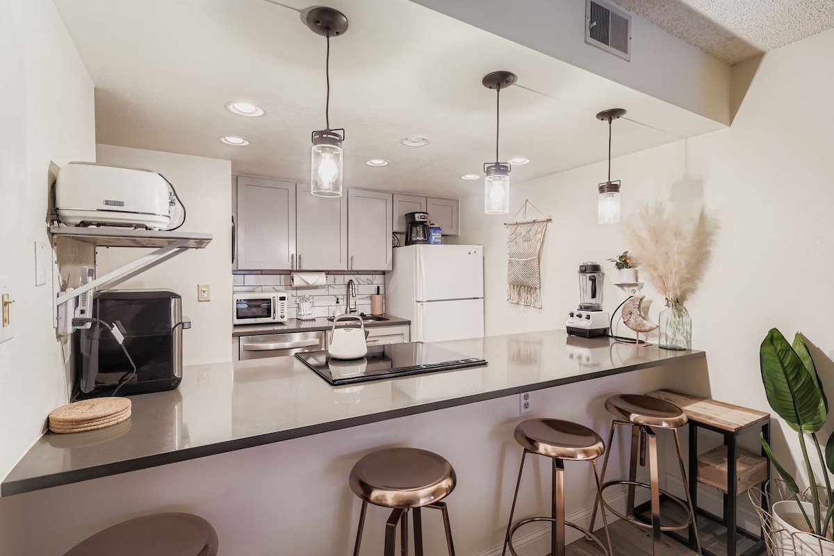 Escape to the mountains in this bright, cozy, recently renovated 2BR 1B condo only a short walk from charming downtown Frisco. Enjoy all of the comforts of home with gigabit internet, a fully equipped kitchen, and premium linens. This is the perfect home base for enjoying all that the Rocky Mountains have to offer. Only 15 min from Breckenridge, Keystone, and Copper Mountain, and 30 min from Vail/Beaver Creek! Bring the whole family with space to sleep up to 8. STR License: 010346.