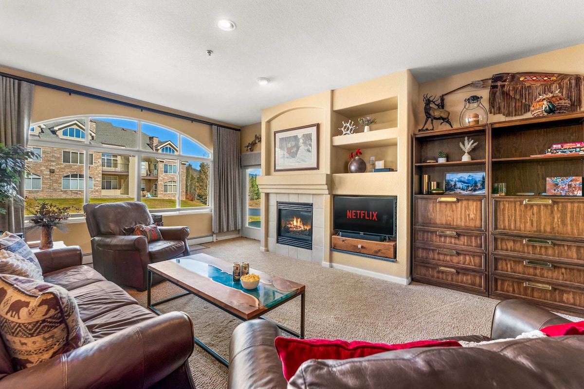 Free covered parking & high-speed internet. 855 sq ft condo w/private balcony overlooking Tenmile Creek & nestled into Mt. Royal. Enjoy a fully equipped kitchen, gas fireplace, balcony, Netflix/smart TV. Bus stops directly out front & drops you at Copper Mnt in 7 min! Centrally located near multiple world-class ski resorts (Vail, Breck, Keystone etc) Tenmile Creek & bike/rec path steps away. Walk to Main St. for shopping & dining. Rent a boat, paddle board at Lake Dillon (.7miles).
