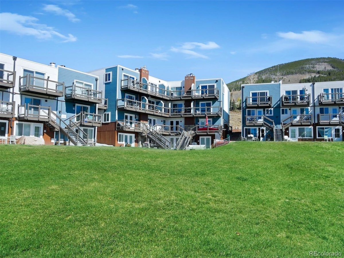 Free covered parking & high-speed internet. 890 sq ft condo w/private balcony overlooking Tenmile Creek & nestled into Mt. Royal. Enjoy a fully equipped kitchen, gas fireplace, balcony, Netflix/smart TV. Bus stops directly out front & drops you at Copper Mnt in 7 min! Centrally located near multiple world-class ski resorts (Vail, Breck, Keystone etc) Tenmile Creek & bike/rec path steps away. Walk to Main St. for shopping & dining. Rent a boat, paddle board at Lake Dillon (.7miles).