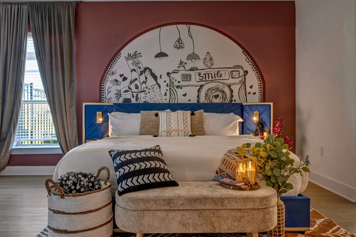 Experience the best of city living in our modern minimalist retreat! Pets Stay Free Enjoy breathtaking views of the city skyline from the comfort of our sleek and stylish high-rise apartment. Located in the heart of downtown, you'll be steps away from top attractions, trendy restaurants, and vibrant bars. Our apt. is the perfect haven for couples, solo travelers, and business professionals seeking a stylish and convenient base for their city adventures.