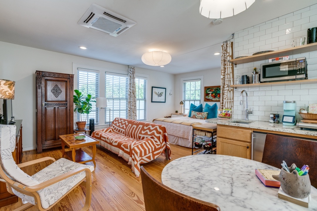 Indulge in the tranquility of The Carriage House. This lovingly updated space features an open-plan living area, contrasting textures and patterns, chic furnishings, kitchenette, and shared access to the lush backyard with a fire pit. Come and enjoy Texas sunshine through the gracious windows on all four walls of your private apartment. Please be assured that surfaces in this space are cleaned with CDC approved disinfectants. All towels and bed linens, including bed spreads and blankets are laundered between guests. Spray Lysol is available for your added convenience. Elegant and comfortable, the Carriage House is centrally located, right at Central Expressway and Mockingbird, excitingly close to all the fun restaurants, bars, shopping, theaters and museums in Dallas. You won't find a better place, either for comfort or location. In addition to the queen size bed, the couch folds out to accommodate another person. Everything you need for a visit, long or short, is available and handy. Arriving late for check-in? No problem, there's an electric lock on the door, so you can check yourself in, as late as you want. Newly remodeled, the Carriage House is on the second floor of a separate building behind our home. You'll have your own driveway for parking, a private guest door to the garden, and then a keyless entry on the door of the apartment. -Microwave, full under-counter refrigerator with freezer, coffee maker, toaster -Smart TV with HBO, Netflix, all local cable channels -Wifi -Polk Audio Digital Radio -Sound machine -Lots of windows -High quality queen bed -Public transportation is only a few steps away We love our neighborhood and look forward to sharing our experience here with you. You can reach us by text or phone call, anytime of the day to answer any questions or handle any issues. We want to make your stay as easy and pleasant as possible, so if you have a question, please don't hesitate to contact me! We live on the property, but work and play keeps us away for a part of the day. The property is located just a few blocks from SMU and some of the more popular entertainment areas in Dallas, including Greenville Avenue, Knox-Henderson, Mockingbird Station, Uptown, and Snyder Plaza. Come and enjoy being in the most walkable area of Dallas. The Grenada, for example, is only a few blocks away. No worries over parking or catching an Uber. You can walk there in 5 minutes. If you are flying into Dallas and don't want to rent a car, you can get to The Carriage House many different ways. DFW: The most economical way is to use the Orange Line on DART, accessed from Terminal A at DFW. Get off at Mockingbird Station. From there you can walk 15 minutes south to the Carriage House, OR take DART bus 24 Via McMillan. Stop at Morningside Ave. We are only steps from this corner. Love Field: You can also access the Orange Line on DART, however, you'll have to take the Love Link Dart bus to Inwood/Love Station. From there, the directions to the Carriage House are the same as above. Also, check out SuperShuttle, a shared ride service from either airport. As always, there are taxis, Uber and Lyft. I'm a traveler at heart, and although I get excited about planning my next adventure away from home, I think it's safe to say that Dallas is a wonderful vacation destination. We have some of the best food in the world, a proliferation of sports and music venues, great theatre and other entertainment events, a lively art scene and tremendous shopping! I love my city, come see us! The property is located just a few blocks from SMU and some of the more popular entertainment areas in Dallas, including Greenville Avenue, Knox-Henderson, Mockingbird Station, Uptown, and Snyder Plaza. Come and enjoy being in the most walkable area of Dallas. The Grenada, for example, is only a few blocks away. No worries over parking or catching an Uber. You can walk there in 5 minutes. Baylor Hospital and downtown Dallas are only a few miles away.