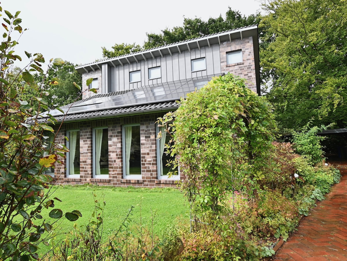 Genieße Deine Auszeit in unserer geschmackvollen Unterkunft direkt am Naturwald Franzhorner Forst. Die Wohnung ist familienfreundlich und komplett ausgestattet mit Allem, was man für eine schöne Auszeit braucht. Wenn Du aus der eigenen Haustür trittst stehst Du praktisch schon auf dem Nordpfad/im Wald. Im gemeinsam genutzten großen Gartengrundstück gibt es eine eigene Terrasse, eine Feuerschale und die Möglichkeit zu Grillen und viel Platz zum gemütlichen Verweilen.