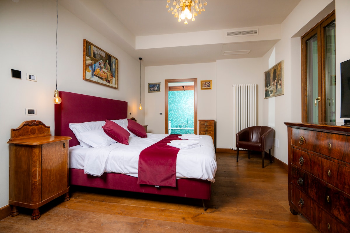 Scopri i negozi e i ristoranti più famosi della zona soggiornando in questo incantevole alloggio. Camera autonoma;Margherita di Savoia (prima Regina D’Italia) Nel 1881 in questa stanza soggiornò la Regina Margherita di Savoia assieme al figlioletto Emanuele. La mobilia e la composizione della stanza è stata restaurata mantenendo fedelmente i materiali e le Caratteristiche dell’epoca. Si trova centrale a 4 metri dalla piazza principale (Piazza Roma)di Santo Stefano di Cadore:Palazzo Cervesato