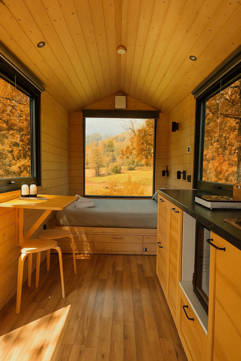 Immergetevi nel comfort e nella tranquillità della nostra splendida Tiny House, situata nel cuore di una tenuta incantevole. Questa casetta mobile offre tutto ciò di cui avete bisogno per un soggiorno indimenticabile. Entrate nella spaziosa zona living, dove ogni dettaglio è pensato per il vostro comfort. La magnifica finestra scorrevole vi offre una vista mozzafiato sulla tenuta, creando un'atmosfera unica e accogliente. Il costo delle pulizie finali è escluso dal prezzo esposto.