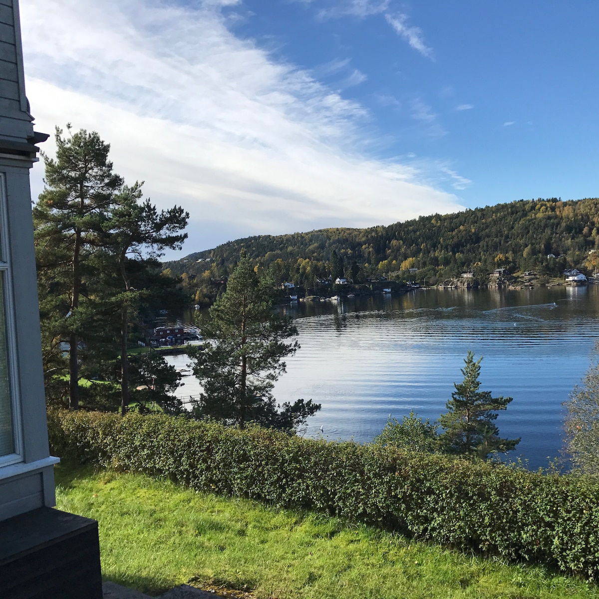 Modern cabin, with open kitchen, large south-west facing terrace overlooking the fjord. Cozy fireplaces. 2 min walk to beach & pier. Tiled floors are heated. Chilly evenings are lovely in wood fired hot tub. Near fishing village Drøbak and Oslo (40 min by car). Great view from the hammock and terrace. Private. Excellent for running, road and single track biking. Trampoline and dolls house. Beds are made, towels and firewood included (in contrast to many Airbnbs in Norway).