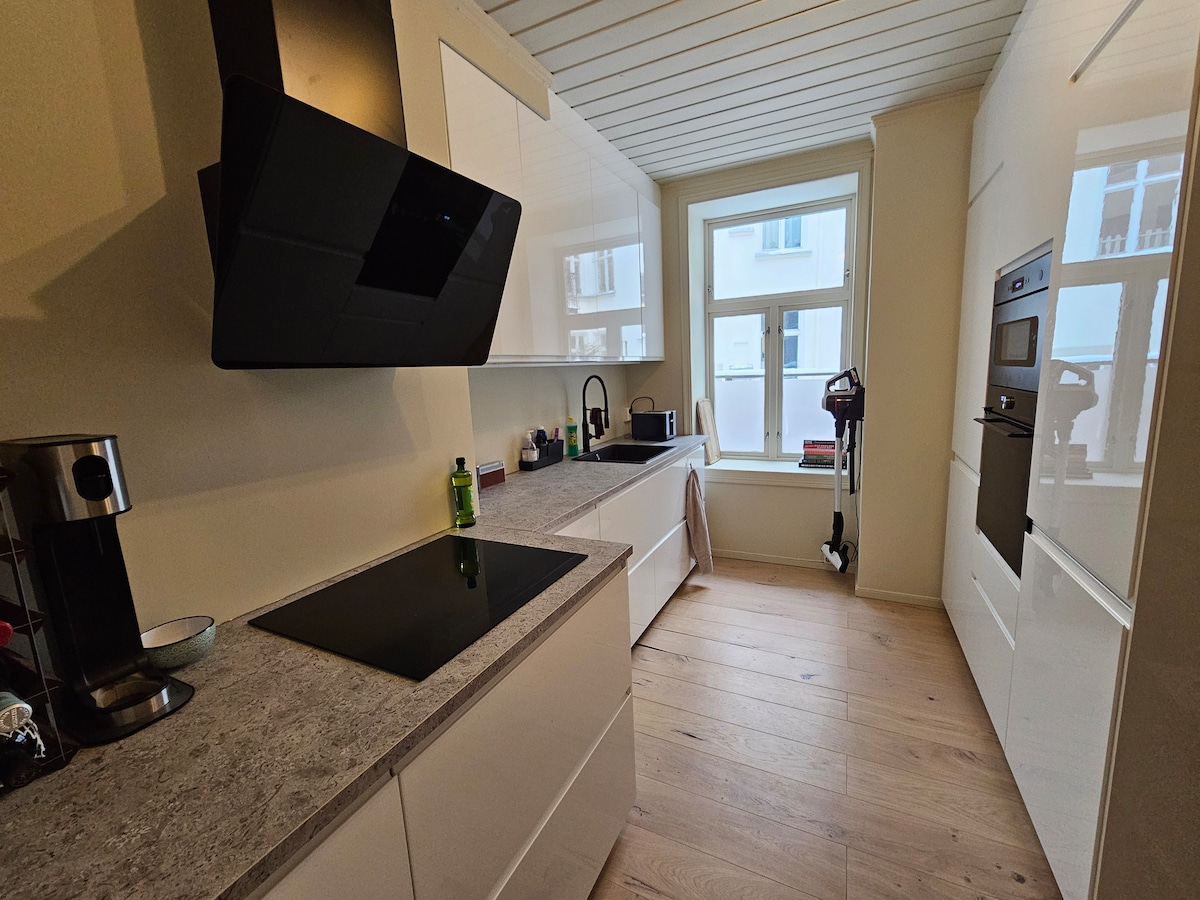 A beautiful apartment located in the best area in Oslo. The perfect place for a great holiday in the capital. Located right behind the Royal Castle, with plenty og restaurants, shops and café basicly on the doorstep. The apartment is completely renovated with high-end solutions and materials. Fully equipped kitchen