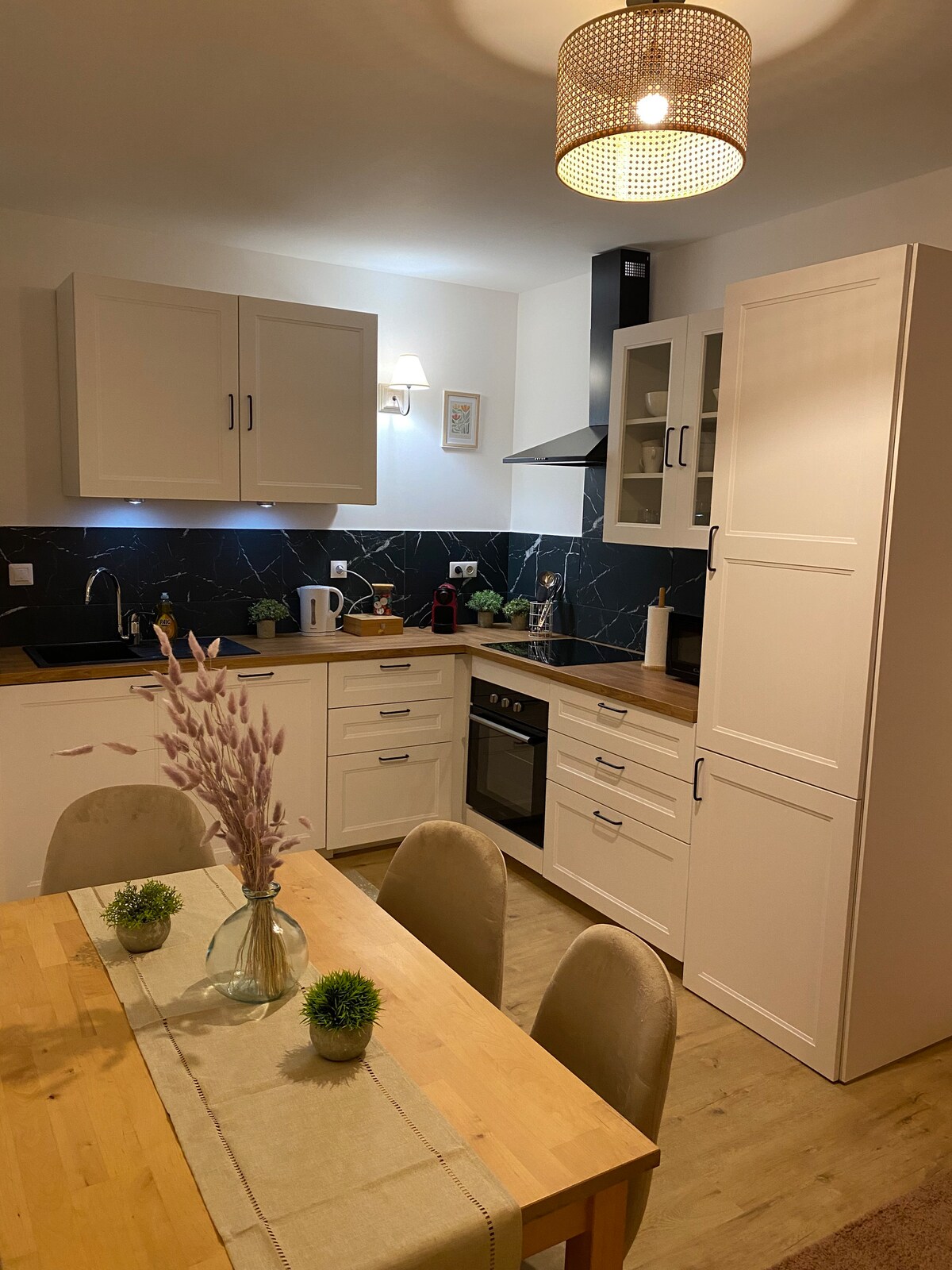 In the heart of the historic center of Luxeuil-les-Bains, at the foot of the Tour des Échevins, La Chambre de l’Échevin is located on the first floor of a renovated historic building, combining character and modern comfort. The apartment features two bright bedrooms, one with a dedicated workspace, a fully equipped kitchen with dishwasher, and a welcoming living room with a 50’’ smart TV. Ideal for family stays, trips with friends, or business travel.
