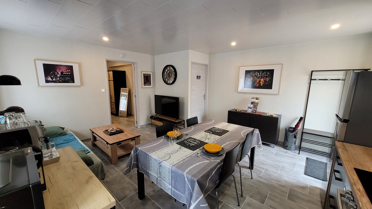 Les colibris. Appartement calme de 32m2 en rez-de-chaussée, à 3 min à pieds du centre-ville avec cour privative sans vis-à-vis, parking privé devant le logement. Une chambre avec un lit en 140x200, un canapé convertible. Cuisine équipée: four, micro-ondes, lave-vaisselle, plaque induction, réfrigérateur combiné. Machine à laver et sèche-linge dans les communs. L'appartement se situe à 8 min à pieds de l'étang de la poche, des thermes et du casino. Chauffage par radiateurs électriques.