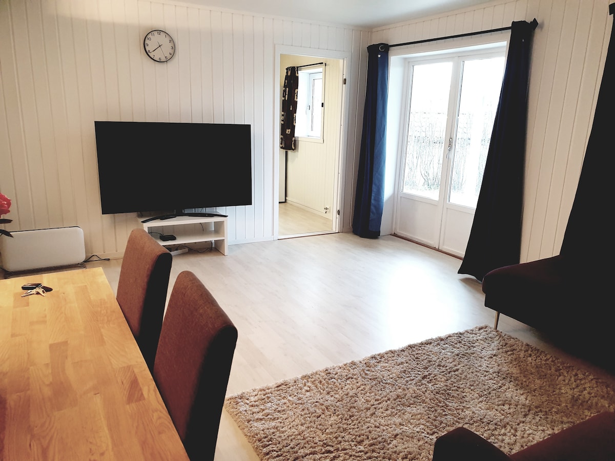 Cosy, spacious, and newly renovated 2 bedroom apartment in a quiet residential area with free parking. The apartment is 3 minutes walking distance to the nearest bus stop, and 5minutes drive to Arendal city centre by car or 10 minutes by public transport (bus). Amenities: Fully equipped kitchen, washing machine, Wi-Fi, Smart TV and Netflix for entertainment. Bed linen/towels included. Outdoor terrace with seating area. Possibility for electric charging for a minimum extra fee