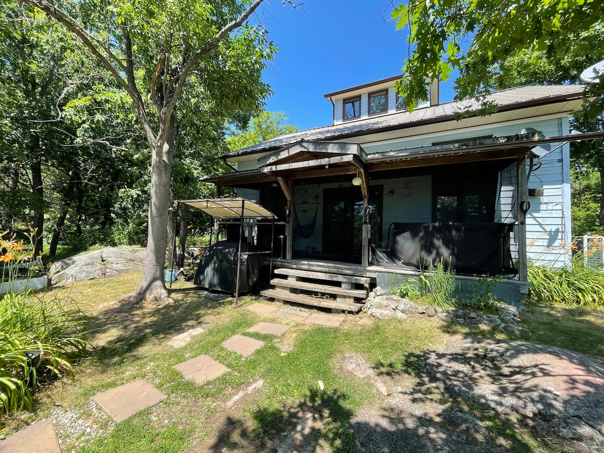 (Please note that after July 1, 2022, HST is included in the listing price) Located 30 km north of Kingston, the "Rock, Pine and Sunlight" cottage offers a quiet retreat for travellers and city folk looking to refresh and experience the great outdoors. Activities include canoe/kayaking, fishing and hiking; cross-country skiing and snowshoeing. Please note that "bedroom 3" is semiprivate. It is enclosed by a folding screen, not a door. The bed is a double futon. The room is best for children.