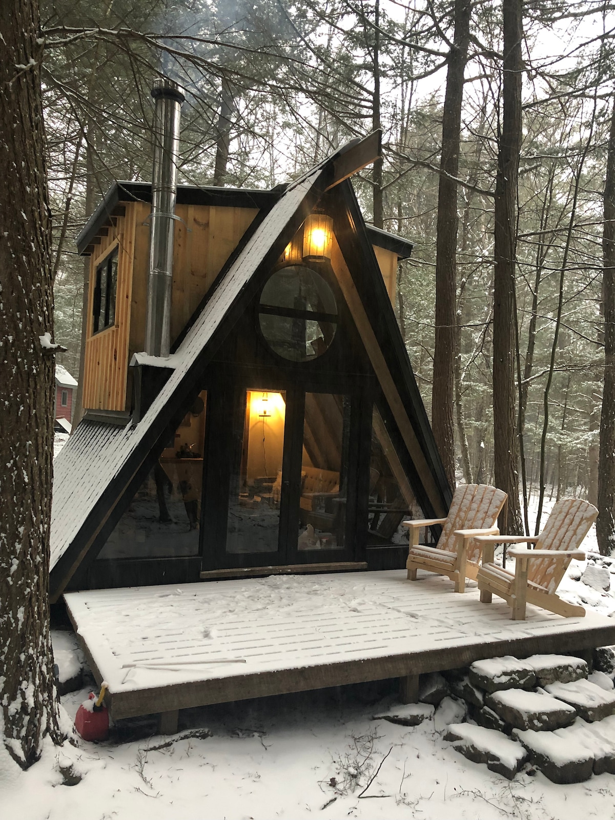 Welcome to “The Hemlock” cabin A unique stay situated minutes from historic Perth, Ontario. The Hemlock sits on 160+ acres of private, natural forest. Enjoy 3 season lake access for kayaking & canoe. Year round trails for hiking, snow shoeing, exploring etc. Beautiful scenery in a peaceful, private setting, relax and unwind by the fire! We look forward to having you! (:
