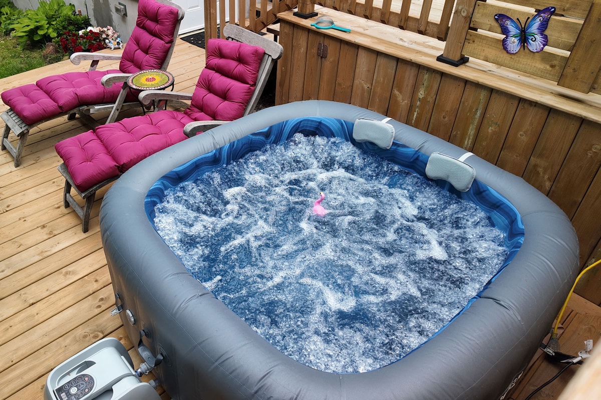 We operate from June 1 -Nov 30. Previous guests are welcome to inquire about winter visits. Thank you for a wonderful 2025 season! Relax in our private romantic retreat surrounded by water, rocks, trees and wildlife. Sand beach, water toys, dock and suite with walkout to deck and BBQ, hot tub and sauna. Private walking trail is 1 km through woods and a meadow with a small frog pond - forest bathing! Suite is cosy comfort. Sound system, two Smart TVs, office or kid's bedroom and full ensuite.