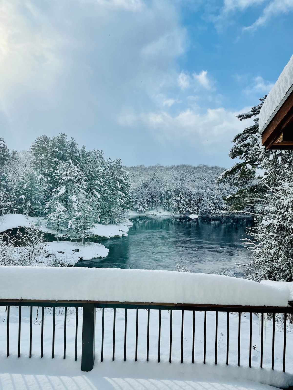 *ALL INCLUDED* Hot Tub, Boats, Bicycles, Seasonal Provincial Park Pass May - Oct 31. At our Island Mill Getaway, a one of a kind experience is waiting for you in the Juliette Grand Suite, on the 2nd floor of our historic 1832 converted limestone mill, nestled between 2 waterfalls on an island in the Salmon River. The beautifully appointed 500 sq ft suite with Juliette balcony, also has a large private, outdoor patio with a covered pergola overlooking the river & waterfalls.