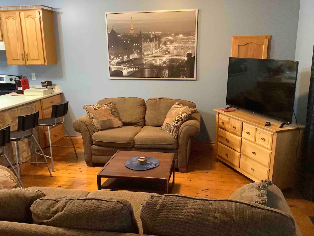 The Rustic Lounge features 2 bedrooms, 2 bathrooms, kitchen, dining area, and living room. Guests are encouraged to park their cars or boat under the carport on the property. Located just a 3-minute walk from downtown Brockville, this space is perfect for families or small groups looking to enjoy boating or fishing on the St. Lawrence River. *Winter Only* Rotary Park is just one block away and offers free public skating. (See listing photos for the skating schedule.)
