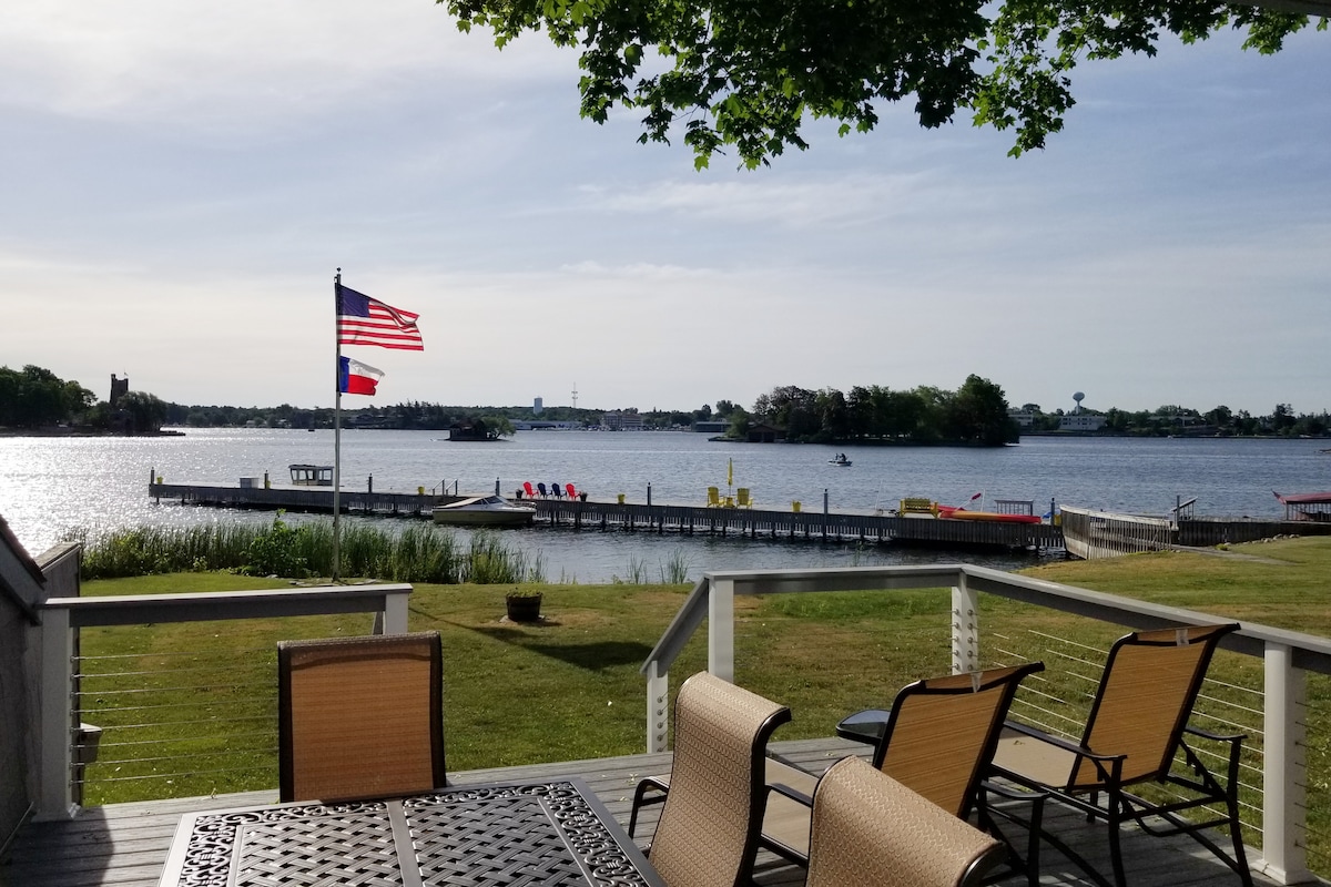 If you are looking for a place to get away from reality, this is the place to stay! Located close to Downtown Alex Bay, right on the St. Lawrence River w/21ft of dock for your boat. Park your car and walk to the bars, restaurants and anything else you are interested in. Not far from state parks and wineries. This home has 2 balconies and a dock to hangout on and comes with all the amenities you will need for your vacation including washer and dryer! It is the end townhouse on the right side