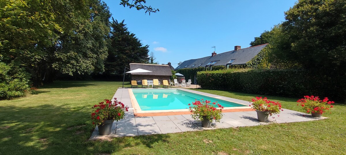 Kervigne Ferel -家庭农舍 + 温水游泳池