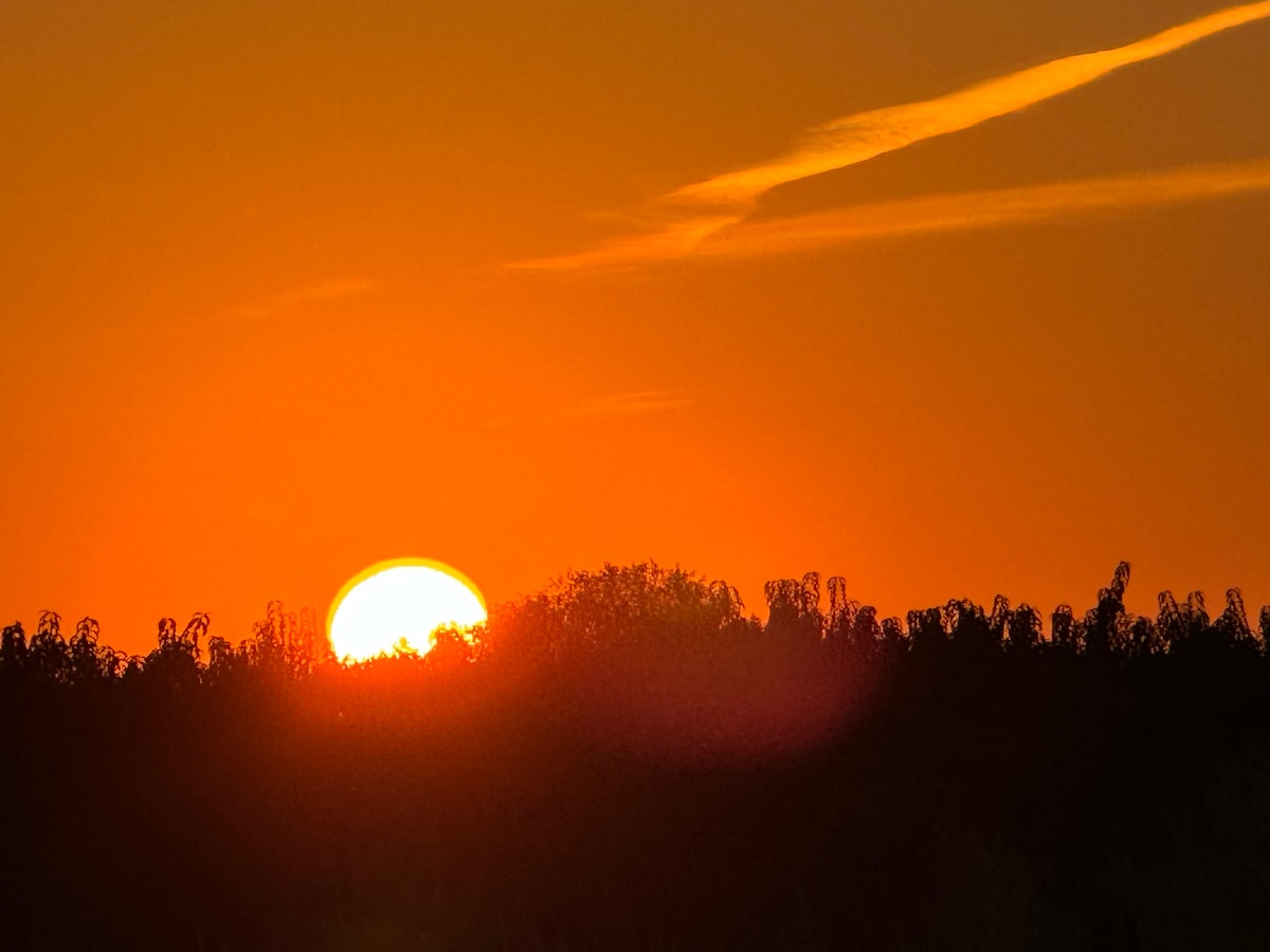 Sandstone views, outdoor area with private hot tub, can be kept cool in hot weather just message your preference. Bedrooms with en-suite bathrooms and are situated on opposite sides of the home for privacy. 7-10 minute bike ride to downtown, 5-10 minute walk to three vineyards,. Orchard surrounds 900 sq ft bedrooms and the living room have smart TVs, the kitchen is well equipped. The fenced yard has shaded outdoor areas to BBQ and enjoy sunsets. Best for 4 guests comfortable roll away bed for 5.