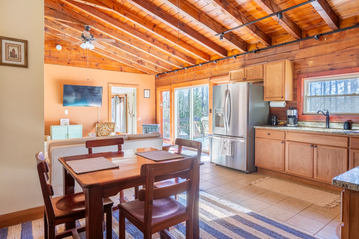 Situated above a fern-covered forest floor, The Treehouse at Fernwind is the perfect retreat for your next getaway. Built with your comfort in mind, this place has it all! Featuring a full bathroom with a walk-in shower and heated tile floor, a kitchenette, a living space, dining area, and queen bed, enjoy the pleasure of tiny space living in style! Located 10 minutes from Hendersonville and 25 minutes to Asheville, The Treehouse at Fernwind is perfectly situated to host your next adventure!
