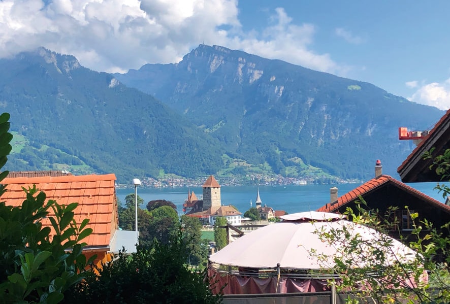 Stay in our bright loft apartment just 9 minutes from Interlaken and a 3-minute walk to Lake Thun. Located right in the village center, shops and a bus stop (to Spiez & Interlaken) are only steps away. The top-floor apartment features one bedroom with a queen bed, a second queen in the living area, a fully equipped kitchen, dining space, comfy sofa corner with TV, bathroom, washer and a balcony with mountain views. Free parking included. Perfect for families, couples, and friends