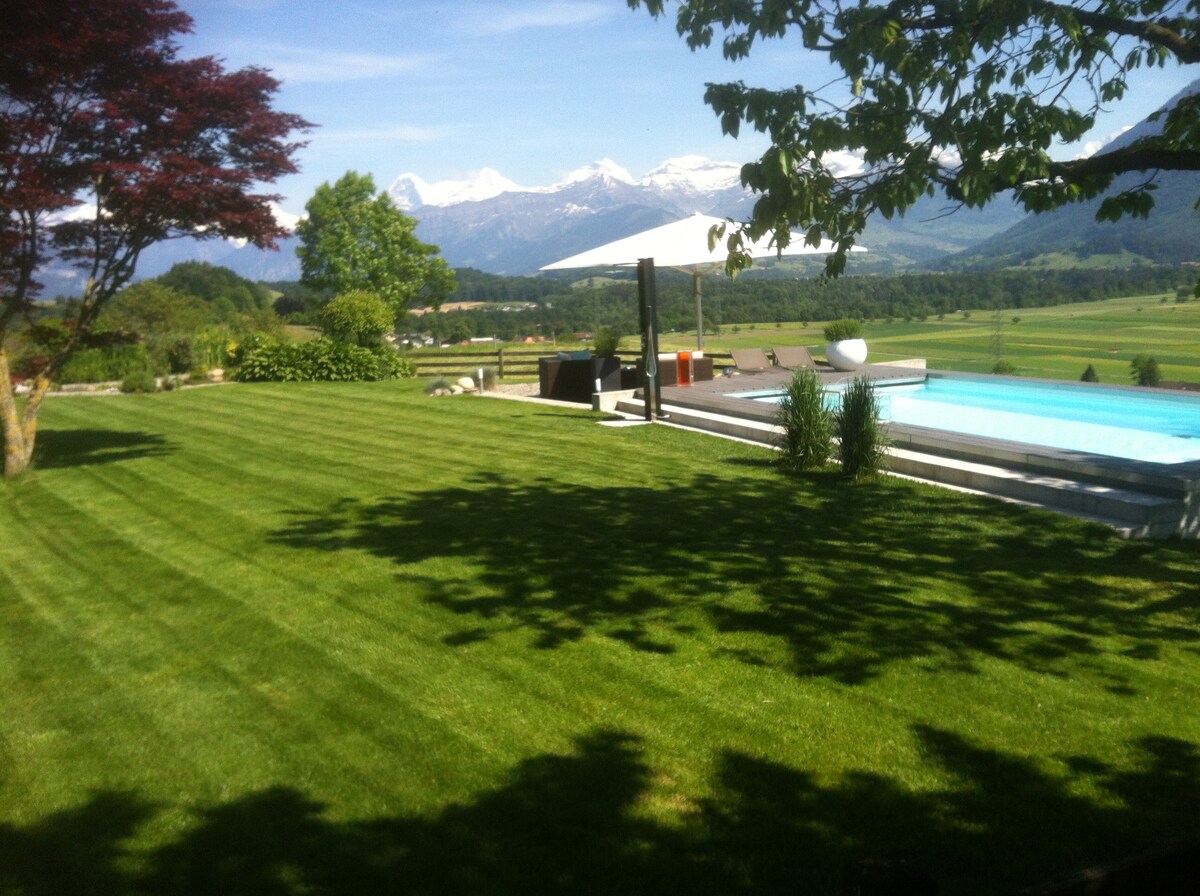 Chalet in Aeschlen ob Gunten on Lake Thun Our single-family house offers everything for a relaxing stay: a well-maintained garden with a private pool, breathtaking views of Lake Thun, parking spaces in front of the house, three cozy bedrooms for up to 6 people, a spacious living area with a dining section, a fully equipped kitchen, and a functional, clean bathroom. Ideal for families or groups to discover the beauty of Lake Thun and the Alps.