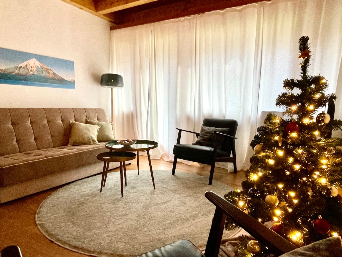 Nestled at the foot of the majestic Niesen mountain in the heart of the Swiss Alps, this enchanting apartment offers a picturesque and central retreat. View the sun-kissed Alps and its snow-capped peaks that frame your windows. Inside, modern Swiss design crafted by Maisons du Monde seamlessly blends with cozy alpine charm, creating a haven of comfort. Whether you're a nature enthusiast or seeking a serene escape, this Swiss abode promises an idyllic alpine experience.