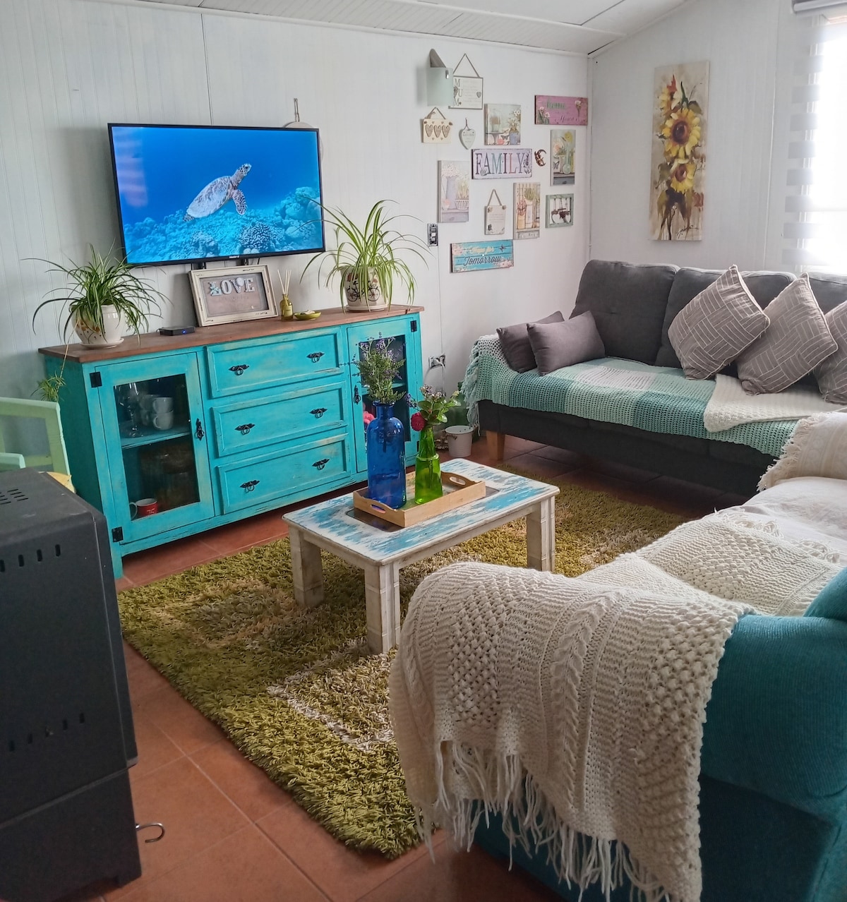 Casa cómoda y acogedora para sentirse como en el hogar. Esta totalmente equipada, calefón con agua caliente, combustión lenta y estacionamiento, sitio cerrado, incluye lavadora y wifi. La casa tiene capacidad para 7 personas. Ubicada en una Villa a la entrada de Frutillar alto (detrás de Terminal de buses Cruz del Sur), pero a minutos del Centro, supermercados y unos 5 minutos del balneario. Y las mascotas son bienvenidas!! NO INCLUYO TOALLAS, EL HUESPED DEBE TRAERLAS.