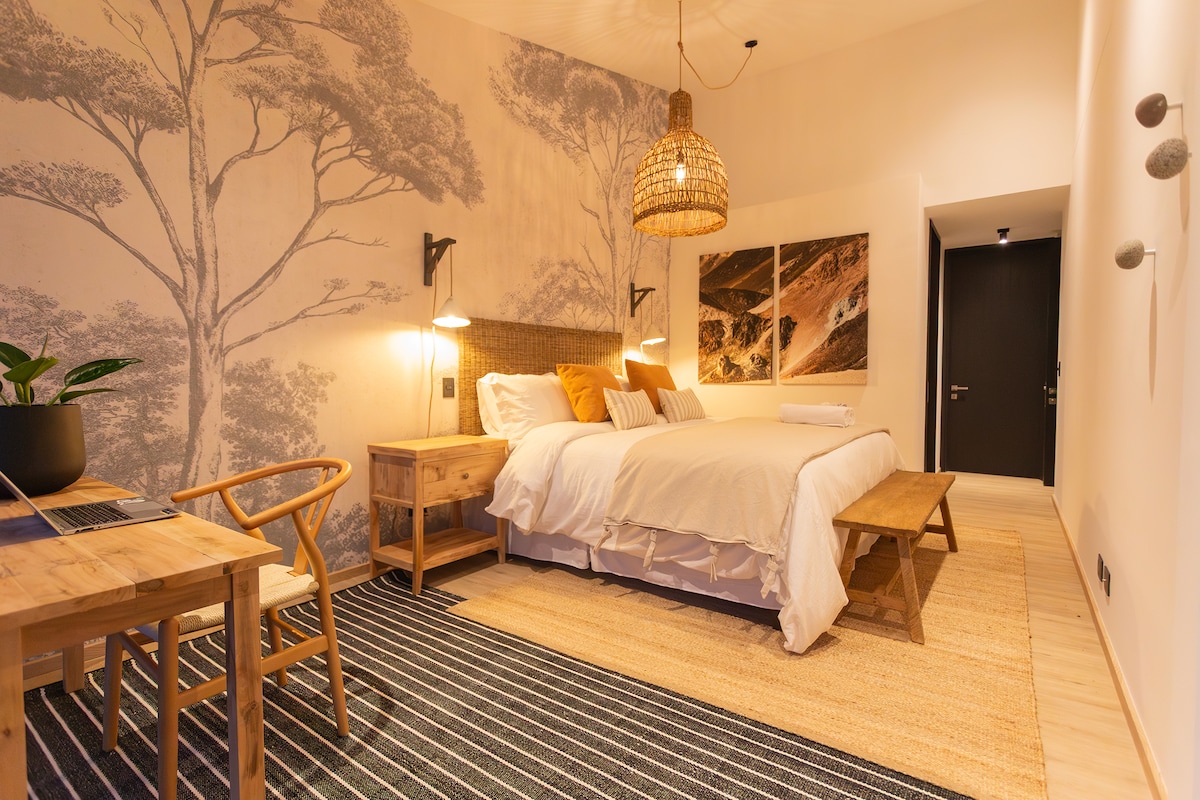 The loft sits on top of a small barn. It has large picture windows with a clear view of Lago Llanquihue and Volcan Osorno. There is a small balcony with outdoor seating. The interior decoration is entirely local hardwood, stone, and wool. The kitchen is fully equipped. There is a pellet stove that keeps it warm even on sub freezing days. The loft is a 20 minute walk from Puerto Varas center.