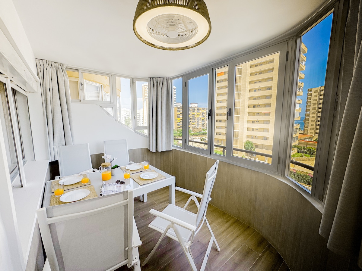 Appartement Fuengirola centre en 1ère ligne de plage. 6ème étage avec ascenseur. Tout climatisé. Aucun vis-à-vis. Terrasse coté mer et 2 balcons coté ville. Soleil matin et après-midi coté mer et fin de journée coté ville. Deux chambres spacieuses et calmes. Lit 160 et deux lits 90. Cuisine équipée (micro-onde, four, lave-vaisselle, plaque induction) Une buanderie avec machine à laver, planche à repasser, aspirateur et espaces de rangement. Internet (fibre), wifi et Smart TV.