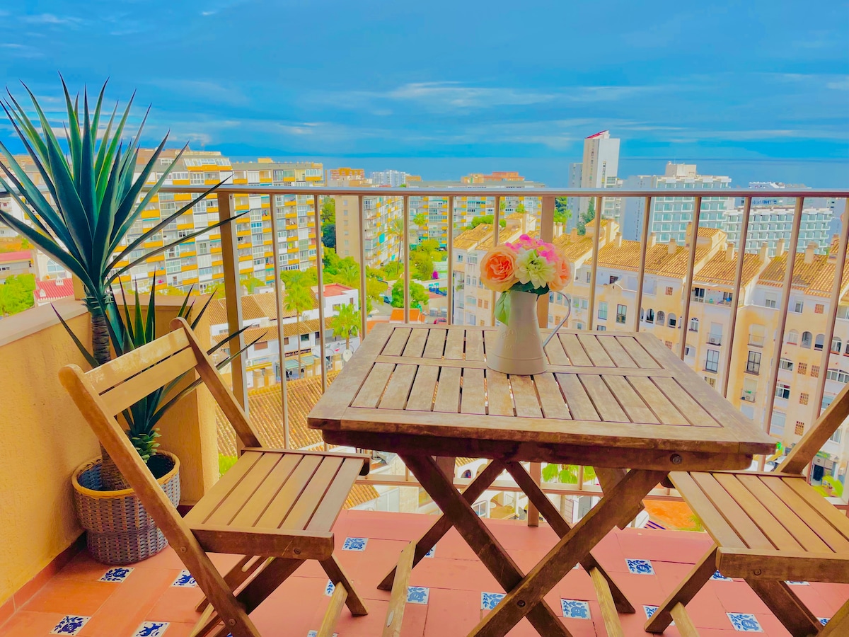 Homey and bright modern studio on the topmost floor, offering breathtaking views from the balcony over the mountains and Benalmadena, as well as the sea (side view). Beautiful sandy beaches are only in 250 meters away from the apartment. There are 3 outdoor pools, a garden, a restaurant, and a supermarket on site. Great location: numerous restaurants and bars, supermarkets are a step away. All main attractions are neaby: Paloma Park, Benalmádena port, Selwo Marina, Arroyo de la Miel, etc.