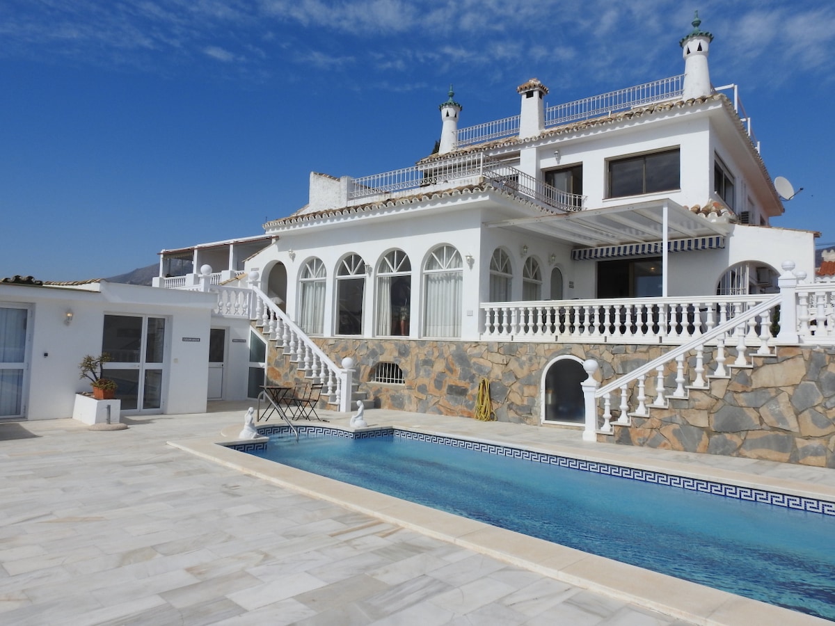 Villa Roveta , un lugar para sonar: Casa aislada,situada en Mijas, Costa del Sol, con vistas panoramicas a la Sierra de Mijas, Mar Mediterraneo, Castillo Sohail.Terraza muy amplia con barbacoa.Admitimos perros educados.A cinco minutos de la playa y cinco campos de golf diferentes.