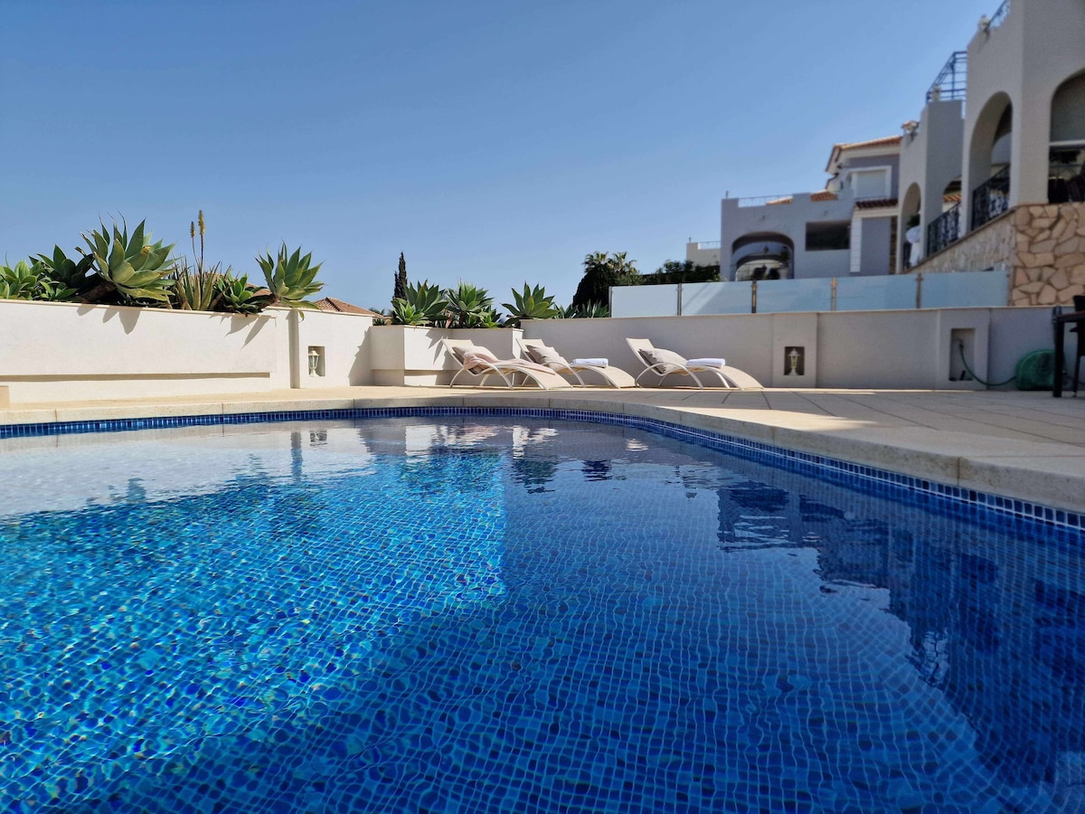 恒温泳池/高级西班牙别墅/海景