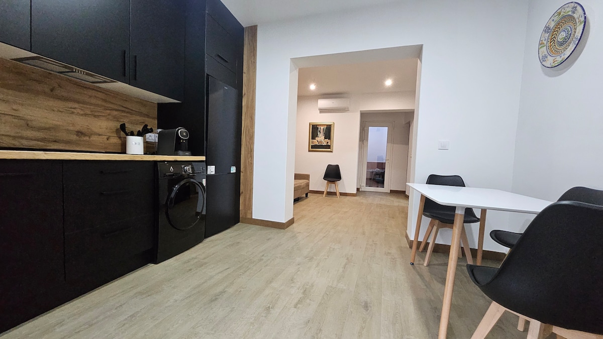 Encantador apartamento en Mairena del Aljarafe rodeado de todo tipo de servicios. Se encuentra a 10 minutos andando de la parada del metro y a 4 de la parada de autobús y a 15 minutos del centro de Sevilla en coche/taxi. Nuestro apartamento es ideal para relajarse unos días en pareja visitando la ciudad, pasear, tapear, o incluso para trabajar. Zona de restauración cercana, varios supermercados, farmacia, bazar.. todo accesible a pie.