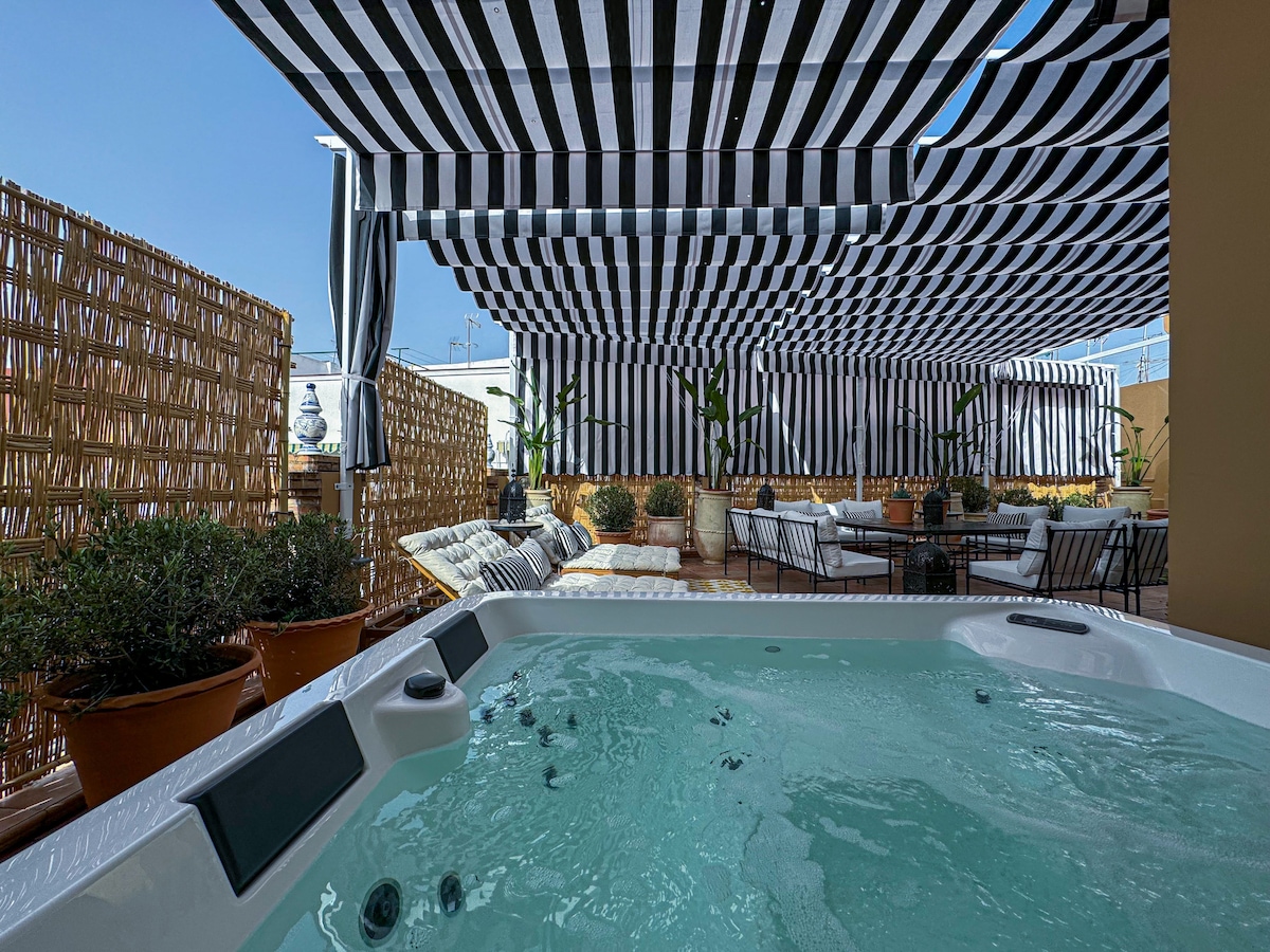 Casa de alto standing con 5 dormitorios, 1 plaza de parking gratis y con terraza privada de más de 100 m2 con Mini piscina -Jacuzzi. Casa ideal para disfrutar amigos o familias; está ubicada junto al la famosa basílica de la Macarena,muy cerca de la plaza de la Alameda de Hércules, a 20 minutos andando de los principales de interés turísticos de Sevilla, pero convenientemente a salvo del bullicio y de jaleos que permitirán a los más exigentes huéspedes descansar de un día de turismo agotador.