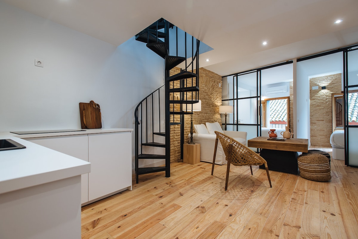 Magnificent penthouse in a recently built building with the highest quality finishes, with two private terraces with privileged views of the Cathedral. Located in the heart of Seville, just a few meters from the Cathedral, Giralda, and the rest of the city's monuments. The apartment is a very spacious studio with a queen-size bed, a living-dining room, a terrace with an outdoor dining area, and another terrace with a sofa, shower, and sun loungers. The views are unbeatable.