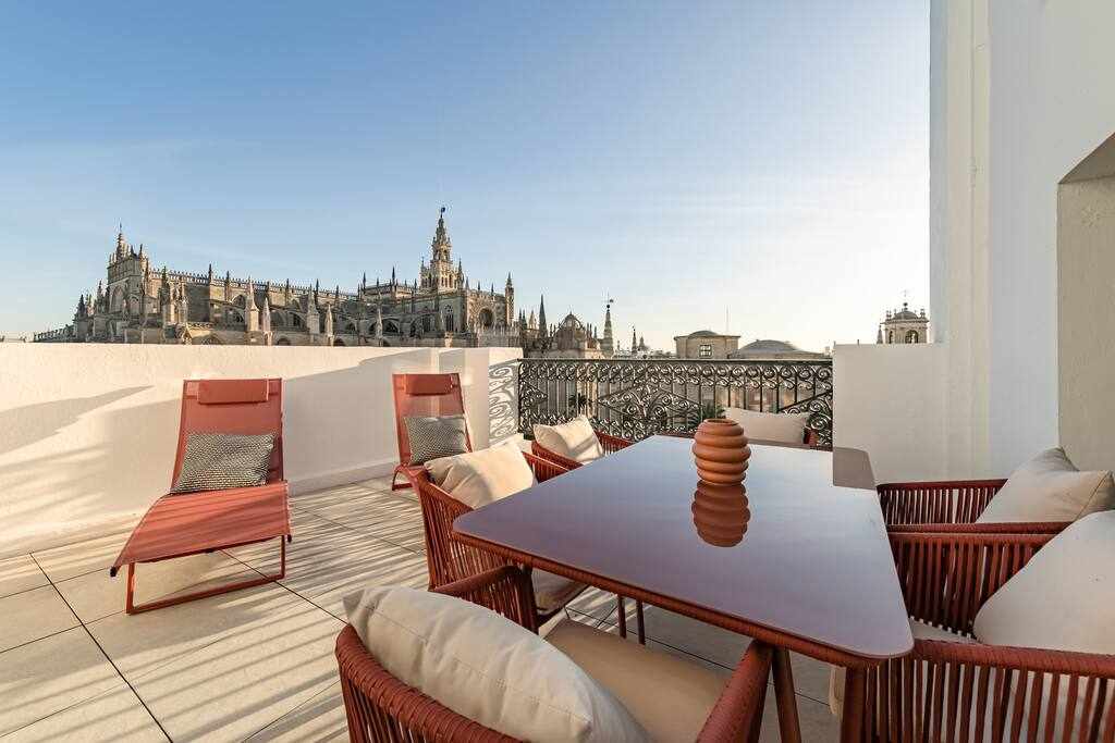 Airbnb with Current Official License. PRIVATE ROOFTOP and three balconies with the Cathedral View and located just 250 meters from the Real Alcazar. Discover the city on foot and let yourself be advised by the best places in the city in a magical and charming area surrounded by tapas bars and ice-cold beer. Relax during your stay and have a leisurely breakfast at the bar in front of the house.Second floor without elevator 💪🏻 ♻️Ideal location to save money on taxis! Just Walk!