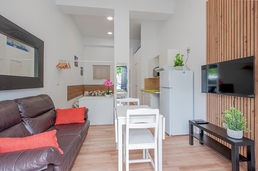 Apartamento totalmente reformado ubicado a unos 4km del centro de Sevilla. Está muy bien comunicado con paradas de autobús y estación de metro cercanas. El apartamento contiene una cama doble de 1,50 y un sofá cama de 1,20. También hay lavadora, plancha, utensilios de limpieza, cocina completamente equipada, TV y wifi disponibles. Hay varios bares y restaurantes por los alrededores además de contar con un supermercado a 40 metros justo enfrente del apartamento.