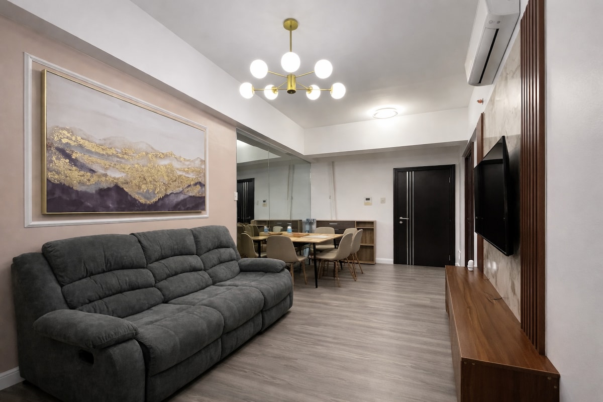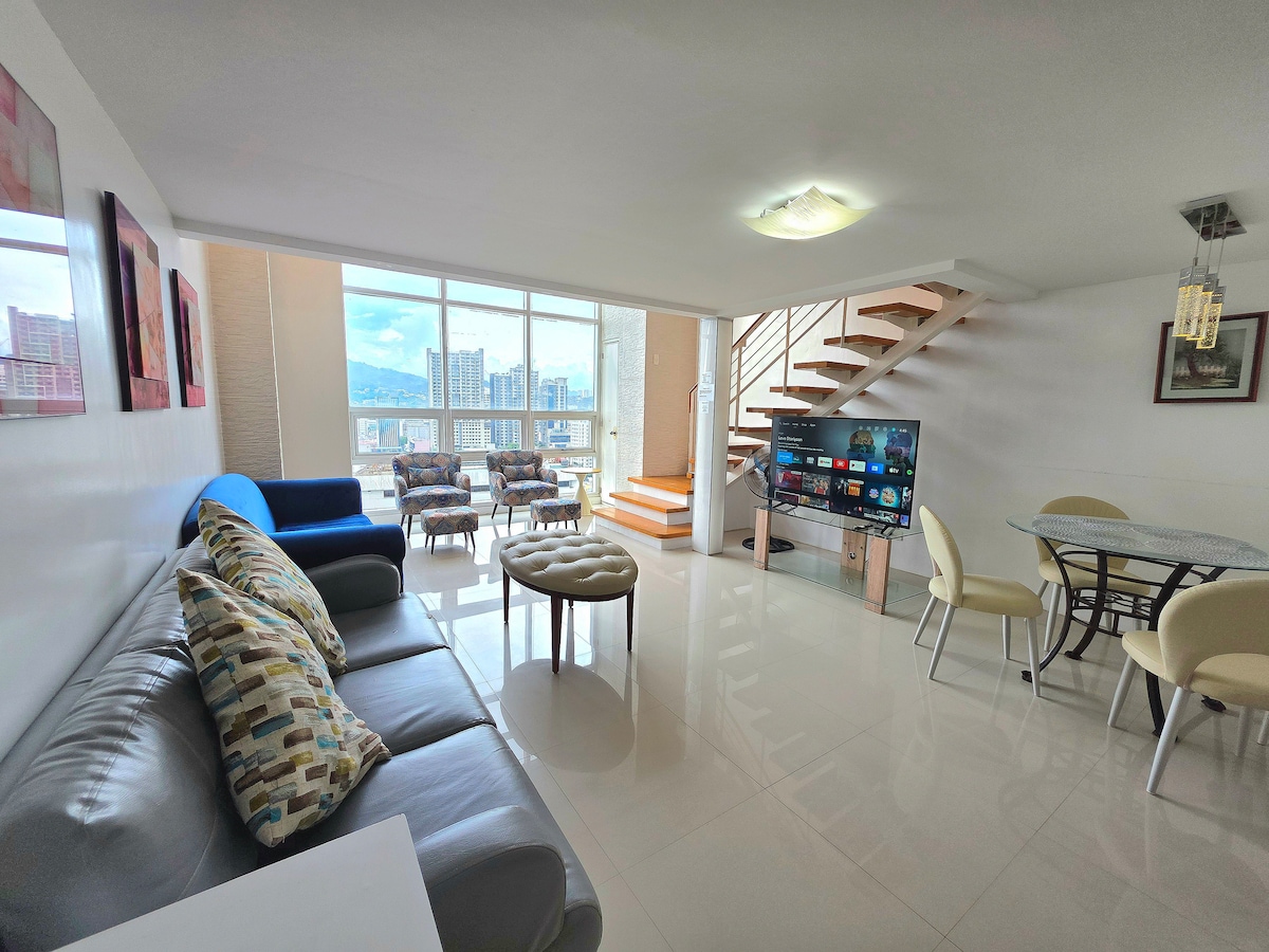 You will love this place for its minimalist yet elegant interior design, the King-Sized bed, the 180 degrees view of Cebu city's coastal view including the new Cordova bridge from the 53rd floor balcony of the tallest building in town and its centralized location where shopping, food, business and night life awaits you every single minute of your stay.