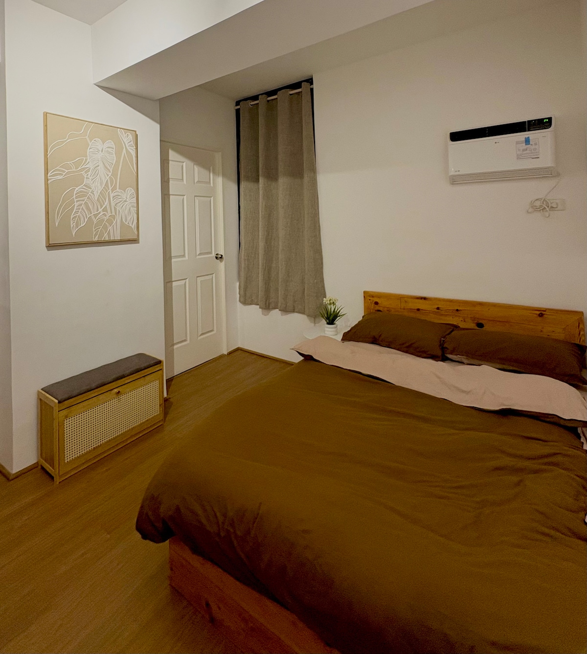 This modern interiored Suite Room with Balcony is equipped with comfortable double sized hotel grade bed. It is designed to respond to your most comfortable sleep requirements. Pool View room with natural sunlight penetrating a light oak themed room. SMART Home * IKEA Beddings * BlackOut Curtains * Hi-Speed WiFi Access * 55 inch Samsung Smart TV * Netflix * Refrigerator * Hot and Cold Shower * mini-bar items * Anti-Fog toilet mirror & more...