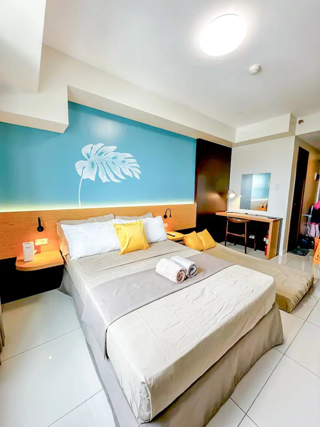 Stay at this Wabi-Sabi studio on the 30th floor of Horizons 101 in central Cebu City. With earthy tones, comfy linens, and warm wood accents, it’s got the perfect relaxing ambiance. You’ll be close to Fuente Osmena and have easy access to transportation. Ideal for travelers, couples on a getaway, or friends out to explore the city. Book your stay in this stylish studio today!
