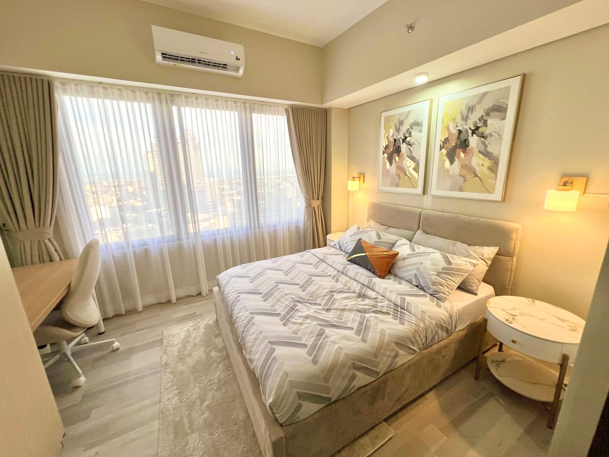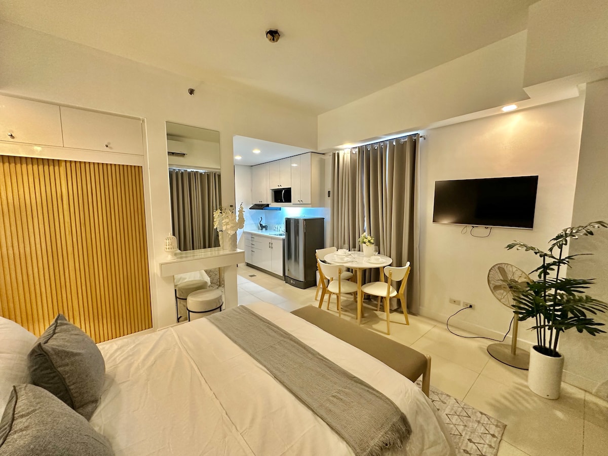 Welcome to our modern & cozy flat at the heart of the city! This stylish studio unit is the perfect home away from home, offering all the essentials for a comfortable stay. Book your stay with us and experience the vibrant city life while having a peaceful haven to return to. We can't wait to host you and ensure your stay is memorable!
