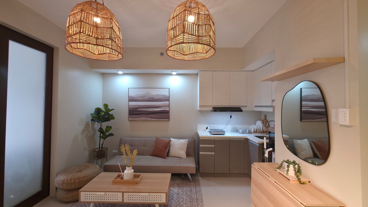 Welcome to your Japandi Boho sanctuary in the heart of Cebu City. This beautifully designed 1-bedroom condo at Baseline Prestige blends Japanese minimalism with warm, earthy boho elements — creating a calm, cozy, and picture-perfect space ideal for staycations, work-from-home, couples, and solo travellers. Soft neutrals, woven textures, and warm lighting make the home feel peaceful and inviting from the moment you walk in.