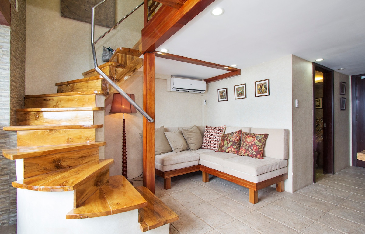 One bedroom apartment ideal for singles or couples. The apartment features a modern loft style bedroom and a seating area outside to enjoy the warm tropical weather. It is a family run business which certainly gives a homey feeling. **Complimentary airport pick up for guests arriving between 7am to 8pm.** PLDT fiber optic wifi connection up to 100mbps