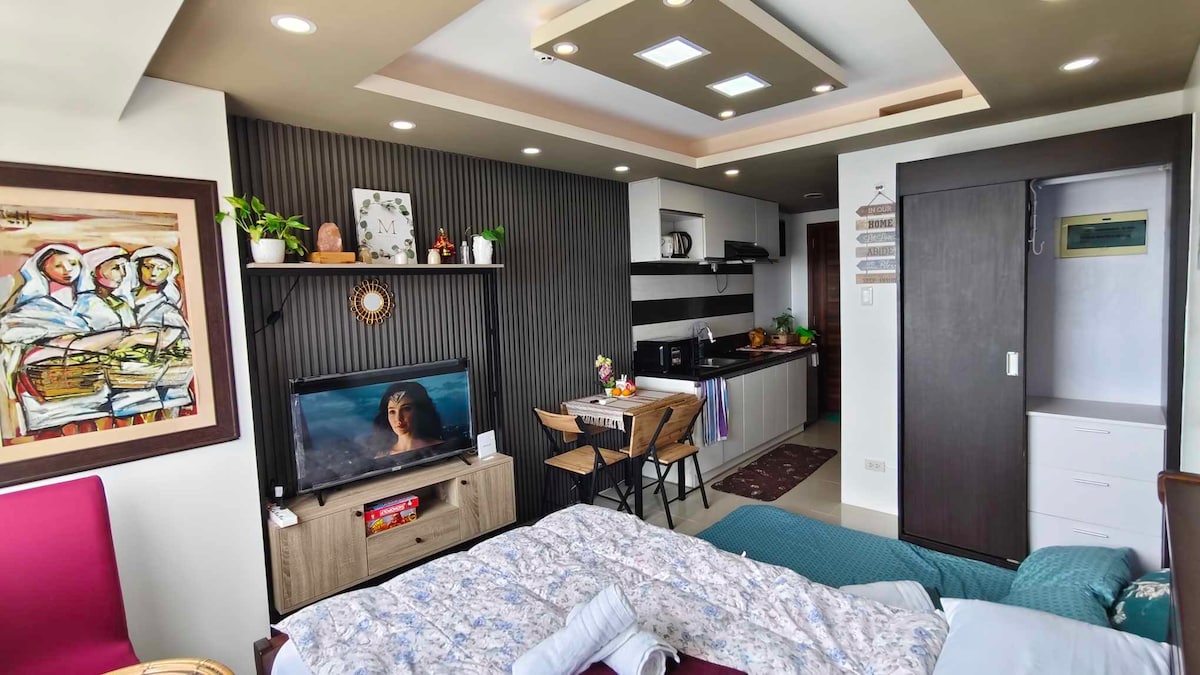 A cozy & thoughtfully furnished studio condo near Cebu’s major commercial & business hubs - IT Park & Ayala Center! So whether you’re visiting Cebu for business or leisure, you’re sure to be accessible & within reach to your destinations. Feel right at home and be greeted with the wonderful views of the sunrise, the hills and fairways. And with Fiber internet, always stay connected wether for work or Netflix. We’d love for you to experience Cebu and to feel right just at home.