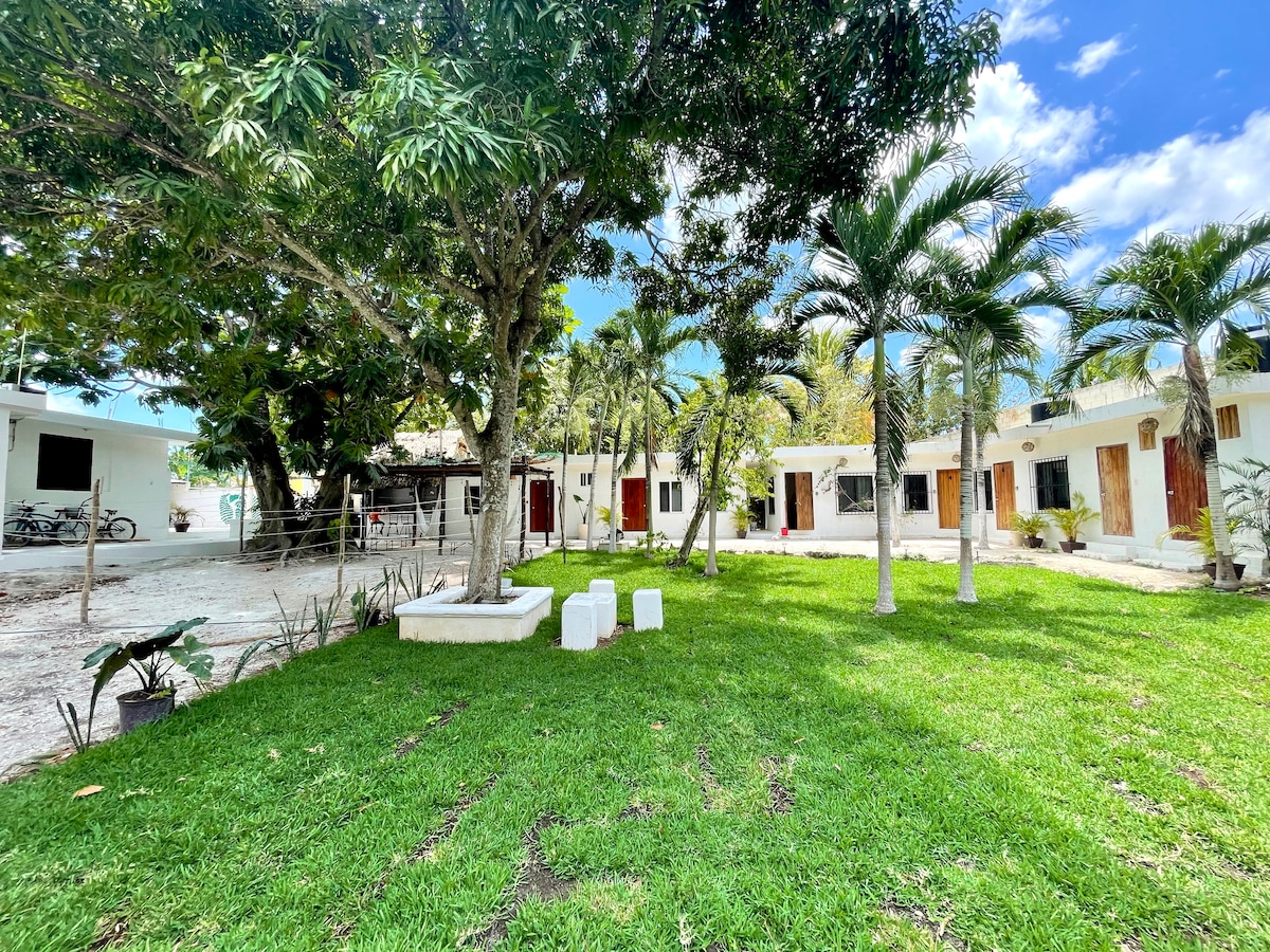 Room for 1 or 2 people with open kitchen dinner, private dipping pool and you own entrance. A patio and garden outside the room. The property is two blocks from the main square of downtown and 4 blocks from the lagoon. A quiet place with a lot of space and harmony. Coffee, tea and water are offered throughout your stay. An area for basic food preparation. Internet access and air con.