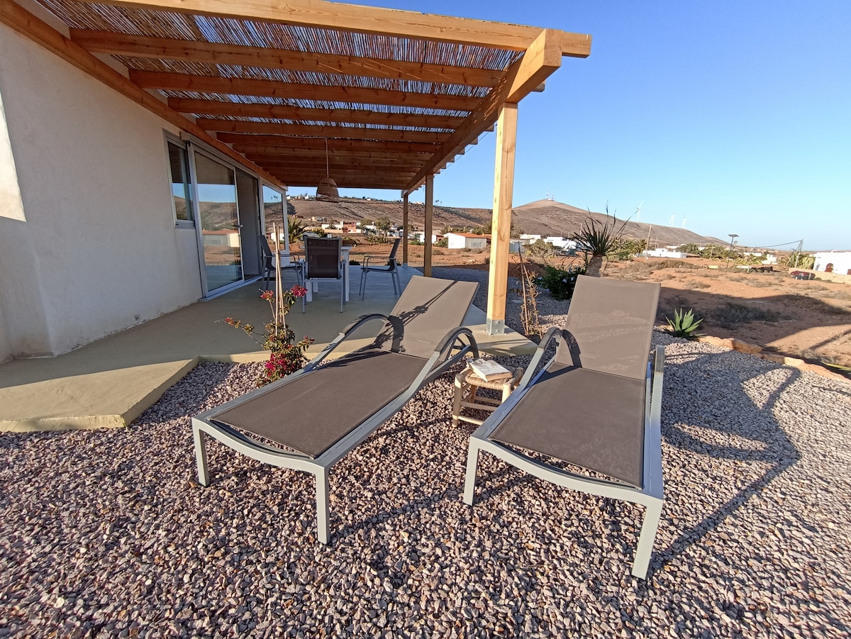 Relax in style. Brandnew house with comfort and privacy. Upscale interieur and selected natural materials provide a modern, yet cosy feel. All wooden floors + south facing wooden terrace make it an all year round comfortable barefoot house. Located on 5,000 m² private ground in the hills above the little town of Lajares. Surrounded by nature reserve with spectatcular 270° views of vulcanos, valleys and sunsets.